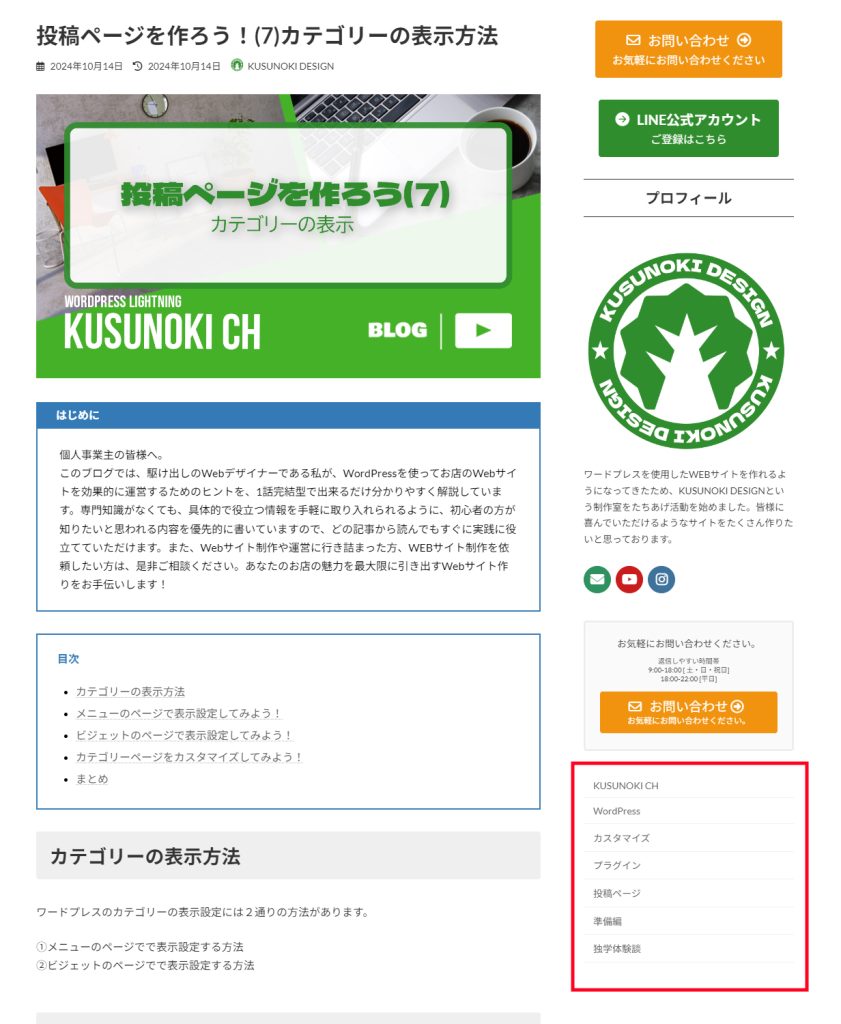 また、わずかではありますが、カスタマイズも出来ます。カテゴリーを表示させることが出来れば、WEBサイトが格段に見やすくなるので是非やってみてください。