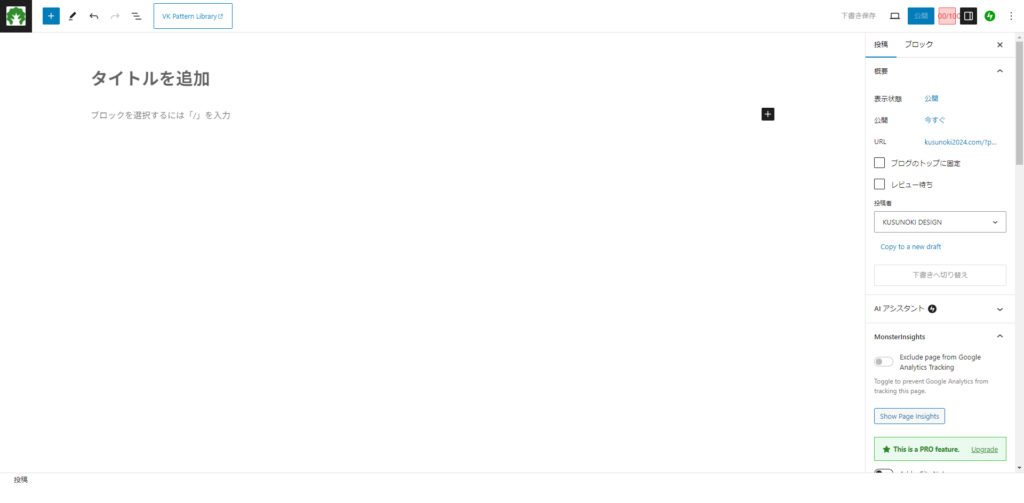 投稿ページ作成画面が現れます。