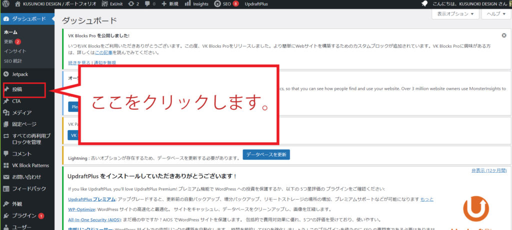 ログインできたら左サイドバーの投稿をクリックします。