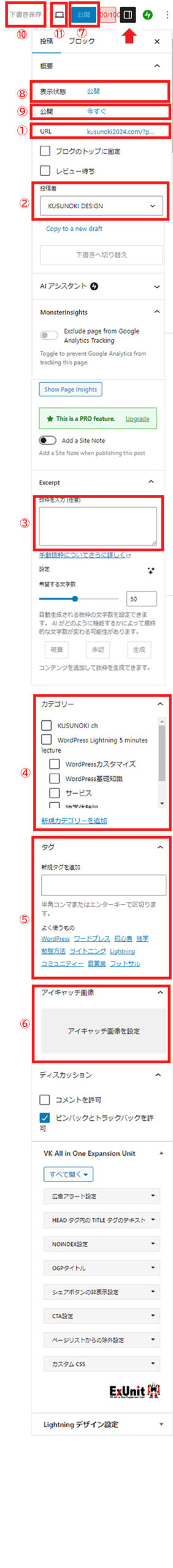 ④カテゴリーと⑤タグ