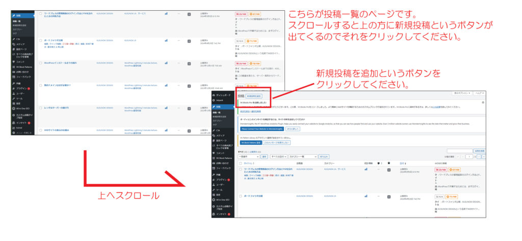 投稿入り欄の画面が現れたら一番上に新規投稿を追加というボタンをクリックします。
