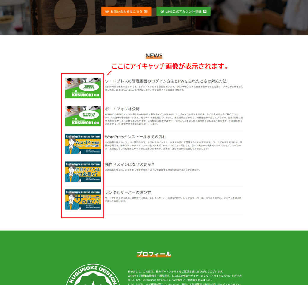 アイキャッチ画像を設定しておくと、先ほどお見せした、ブログ一覧に画像を表示させることが出来ます。ブログ記事にあった画像を入れておけば訪問者も多くなる事でしょう