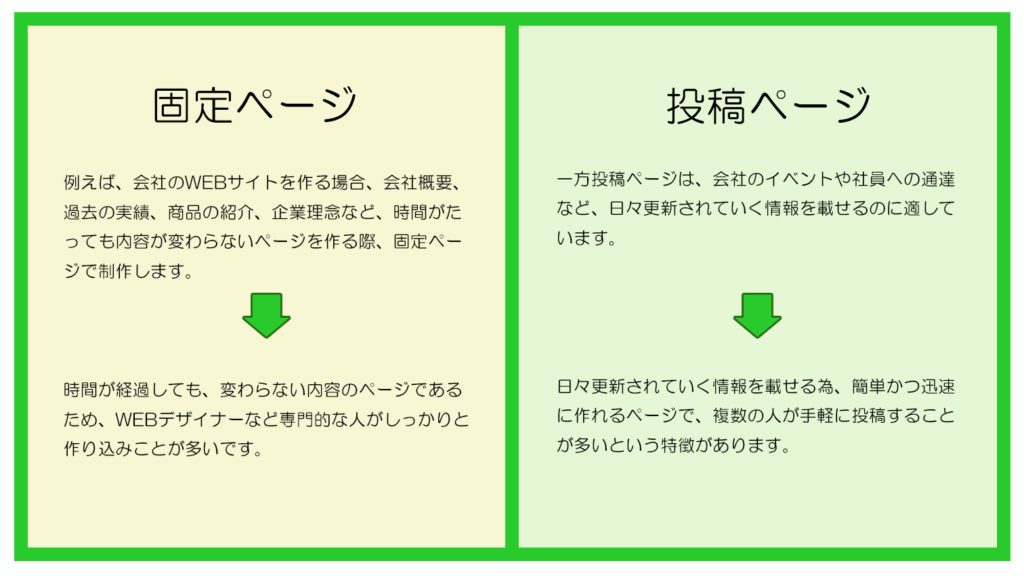 投稿ページの作り方についてお話する前に、固定ページと投稿ページという物についてお話したいと思います。